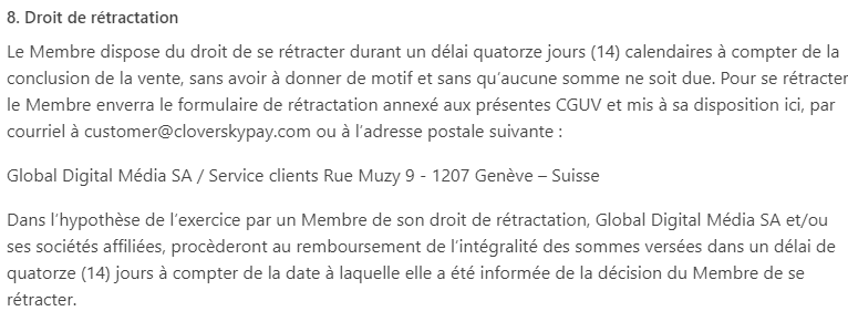 8. Droit de rétractation