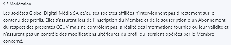 Nous Vous Invitons à Consulter les CGU Jacquie et Michel Black ! Celles-ci sont accessibles en bas de page, sur la page d’accueil. Précisons qu’il ne s’agit pas uniquement des règles pour utiliser les services Jacquie et Michel Black mais aussi des conditions relatives à la vente des différentes offres payantes. Il est donc fait mention des Conditions Générales d’Utilisation et de Vente. Vous pouvez aussi les Télécharger au Format PDF !