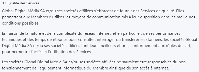 9. Obligations de Global Digital Média SA et/ou ses sociétés affiliées