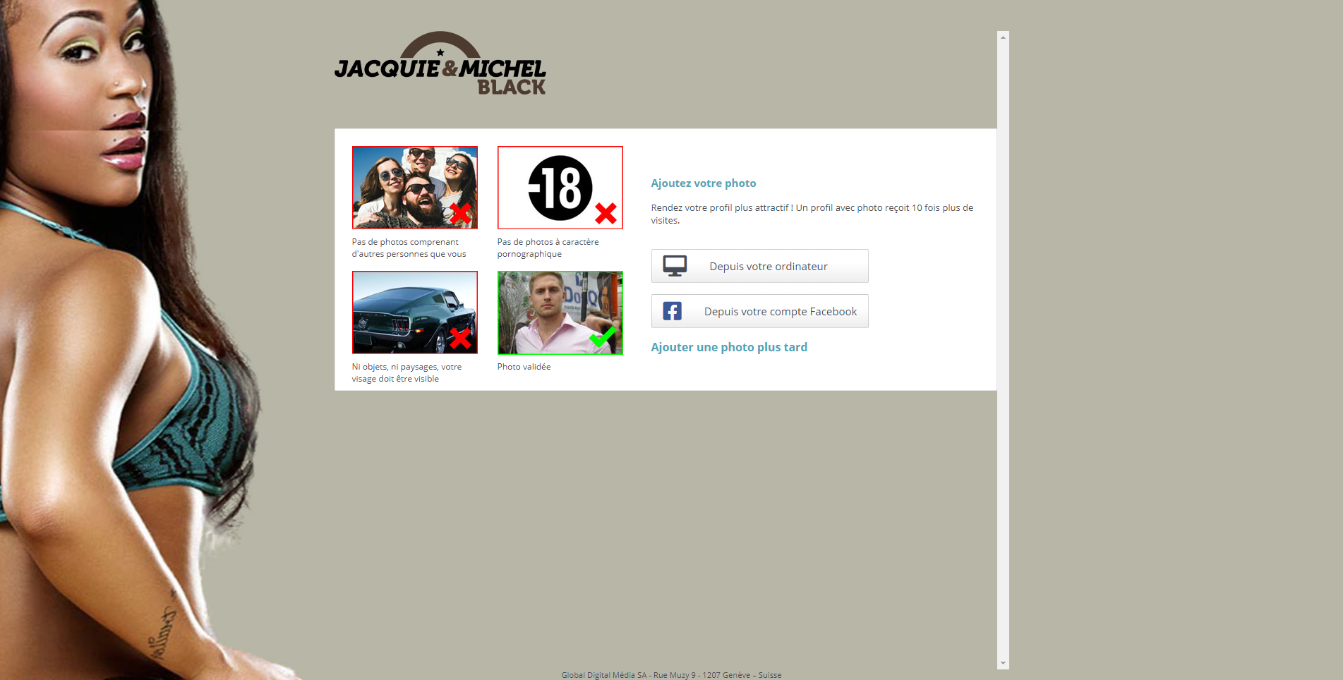 Enfin, vous ajouterez une photo, en suivant les règles édictées par le site. L’inscription est presque finie.