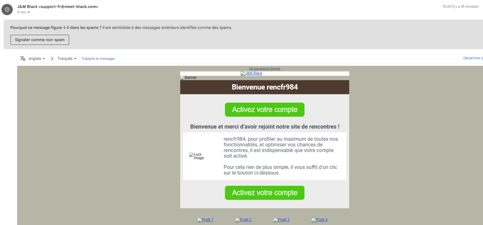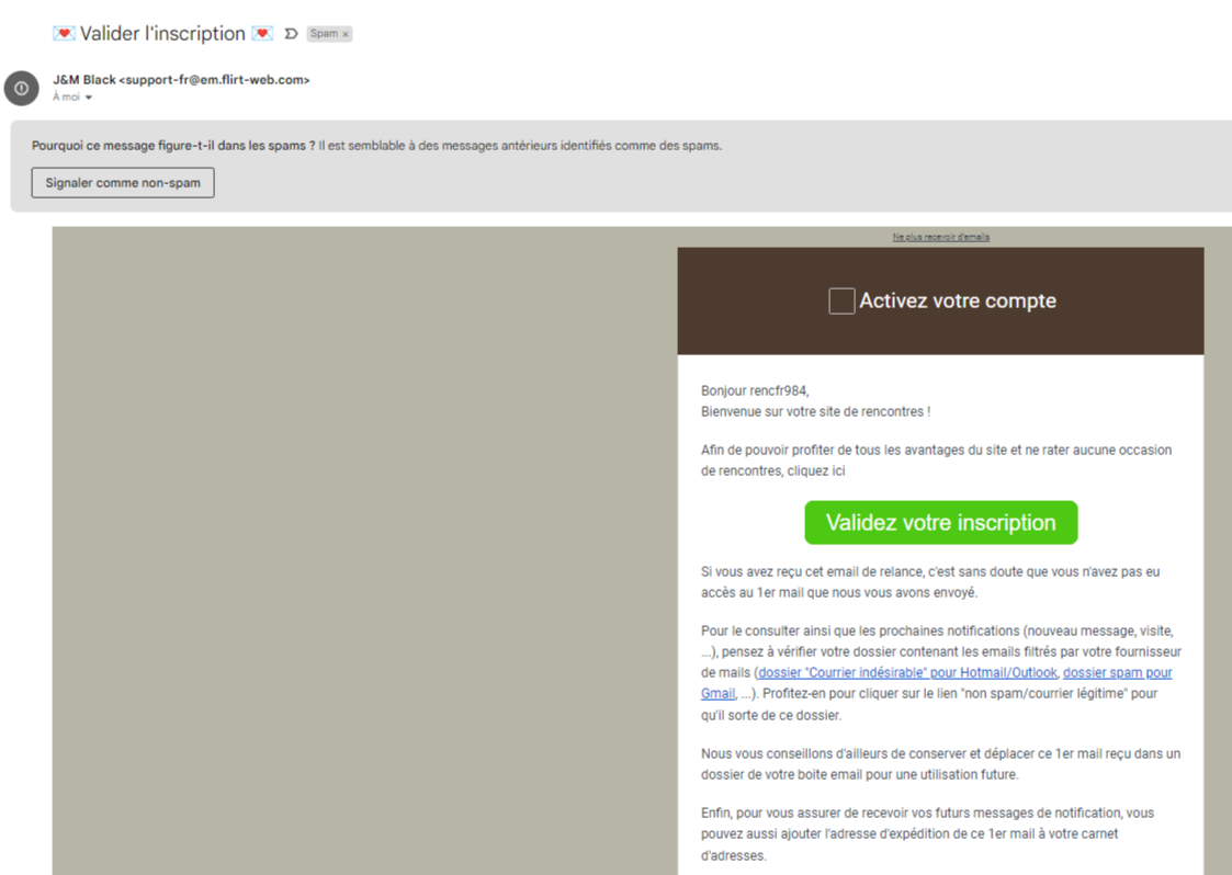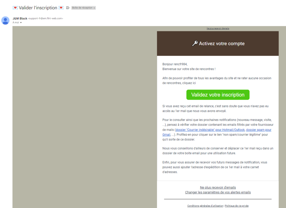 Enfin, je reçois un email rappelant le nom de la référence bancaire, la date du paiement et l’heure précise. Cette information légale permet aussi de protéger aussi bien le futur usager de ce portail de dating en cas de transaction frauduleuse ou d’abus de la part d’un futur abonné.