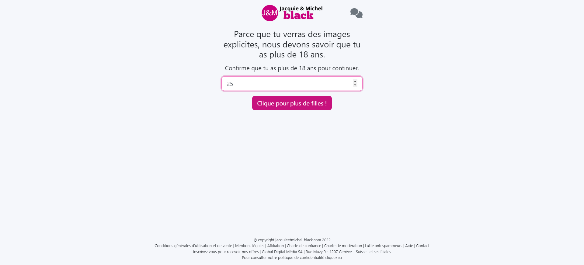 Entre-temps, ce site de rencontres affinitaires vous demandera votre âge, dans la mesure où vous verrez des images explicites. D’un point de vue légal, J&M Black est tenu de vérifier que les visiteurs de son site ont bien plus de 18 ans. Vous devrez donc mentionner votre âge, supérieur ou égal à dix-huit ans. Pour l’exemple, j’ai indiqué que j’ai 25 ans mais je ne vous donnerai pas mon véritable âge. Je me suis rajeuni volontairement 😉